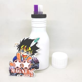 Petrol wash bottle, with brush tip to clean the tires and chassis from oil.