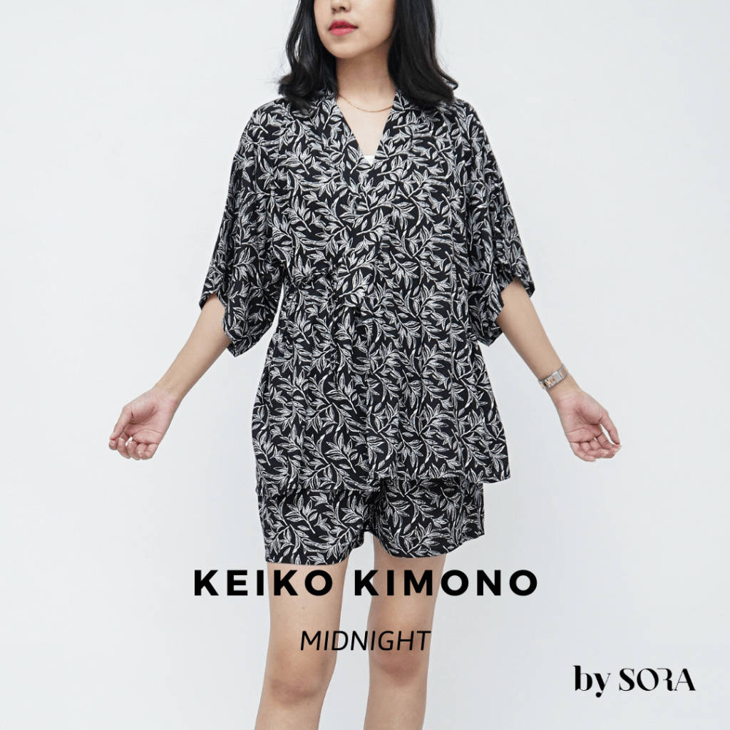 Kimono is a unique type of garment from Japan. The Keiko Kimono is a female kimono made from Rayon, a natural textile fiber derived from the bast of the tree. It is soft, cooling, and easy to iron. The kimono has been manufactured in Indonesia. Premium Pajamas, locally produced Material: Premium Rayon, soft, cooling, and easy to iron Size: All Size, fit to XL Bust: 112 cm Waist: 60 - 100 cm Pants length: 32 - 34 cm