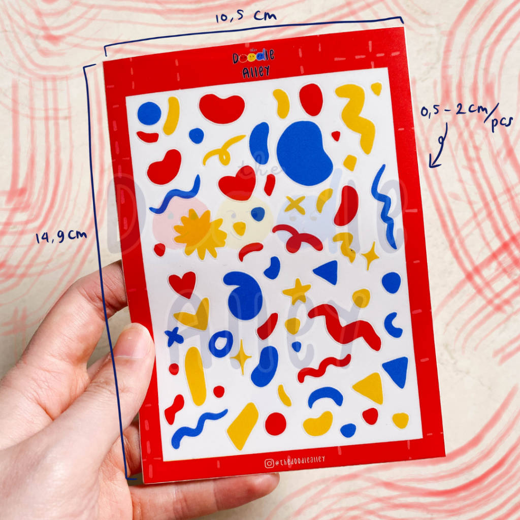 Deco sticker originally illustrated by The Doodle Alley STICKER DETAILS: - Size A6 (105 x 148 mm) - Size each stickies: 0.5 x 2 cm - Material: vinyl and doff-laminated