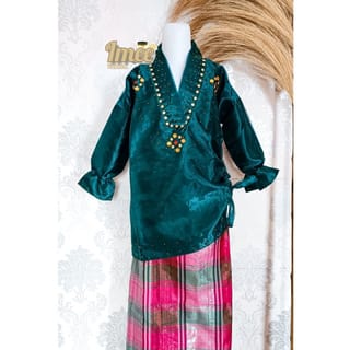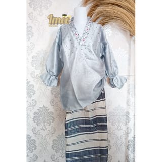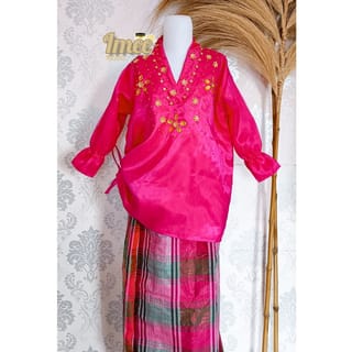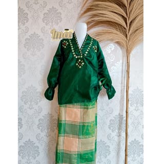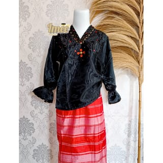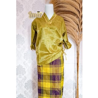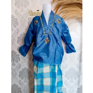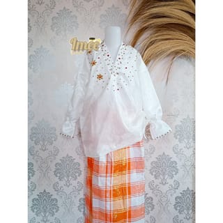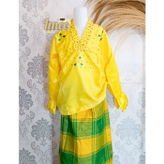 suit including shirt and sarong The material of the Organsa shirt is furing, and the bottoms are already in the form of a skirt with rubber at the waist