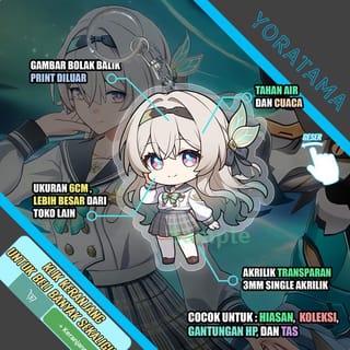 Want to buy multiple characters at once? Click the cart below for each character THE COLORS MAY DIFFER SLIGHTLY (5-10%) DUE TO THE PRINTING PROCESS AND SCREEN DIFFERENCES The image is not 100% the same as the sample, there may be a little bit of detail missing and a little white outside the outline -Size 5-6cm -Thickness 3mm, 1 acrylic layer Front Print, Back to Back Print, -The picture on the front is not between the acrylic, Not suitable for use with iron motorcycle keys because it will easily peel off the corner of the lock (FOR THE PICTURES IN ACRYLIC, PLEASE CHAT FIRST BECAUSE THE PRICES ARE DIFFERENT AND MUST BE PRE-ORDERED) -UV print instead of sticker (Waterproof and anti-fade/color-defading) -Laser Cutting Custom Way: -Prepare the drawing and for the rule the drawing is in the 2nd or 3rd picture, -Then order on the custom link according to the number -After ordering, please ask for a link to fill out the form to the admin -Then confirm to the admin if it has been sent -For the process is 3-10 days according to the queue and does not include shipping There is a Random / Waifu/Husbu Sticker Bonus for Purchases above 40K / 40K Operating Hours: Monday-Saturday (Sunday no delivery only order acceptance) Delivery Time: Orders Before 12:00 (12 noon) will be shipped the same day (unless there are stickers or there are some obstacles) Oder Over 12:00 (12 noon) will be sent the next day. For JNT, delivery is carried out every 2 days, because waiting for a lot of couriers to be taken Please video from before opening the package, until all items are issued WITHOUT PAUSE/CUT, Complaints Without Video Unboxing/Opening Package will not be processed