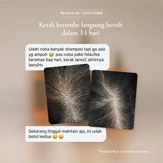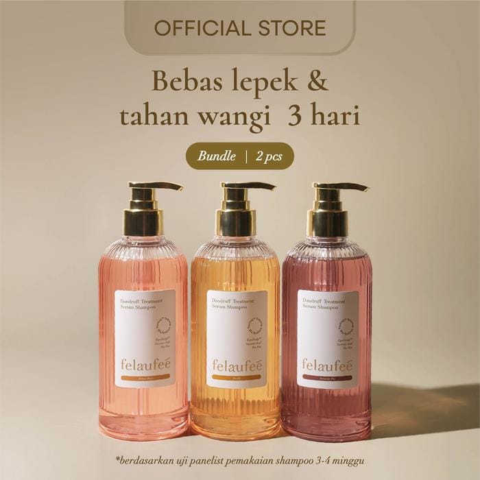 Felaufeẽ Dandruff Control Serum Shampoo 400ml Bundle: Twilly & Sweetie Pie Velvet Rose & Twilly Velvet Rose & Sweetie Pie Serum shampoo with EquiScalp Technology and 11x active ingredients that can effectively cleanse dandruff without giving a dry taste and does not irritate the scalp Can be used by all scalp types (including normal without dandruff) to keep the scalp healthy and nourished Benefits: - Nourishes the scalp with serum ingredients - Cleans dandruff & dandruff - Relieves redness & itching on the scalp - Resists dampness on hair and scalp Safe to use on: Sensitive Scalp Seborrheic dermatitis Psoriasis Bumil & Busui How to use: 1. Make sure the hair is perfectly wet 2. Pour shampoo, add a little water and spread it on the palm of your hand 3. Thorough massage of the scalp & hair 4. Rinse with water thoroughly 5. Shampoo twice if needed Comes with 3 different scents; Twilly (Sweet fresh) Velvet Rose (Old Floral) Sweet Pie (Sweet Fruity) BPOM Registered