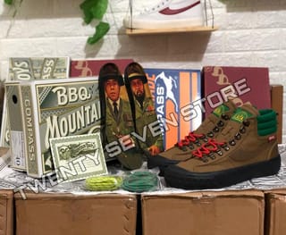 PLEASE READ !! Before making a purchase, you should choose a size according to the size of your foot because the size of the Compass Shoes is down size from other local shoes. The Compass Shoe size guide can be seen in the picture provided, we do not accept returns if the buyer is negligent in selecting the size. Buy = Agree (The photo listed is 100% REAL PICT of our shots) Ready Compass BBQ Mountain Burger Style & Cabin Style Size 38-44 ORIGINAL 100% BNIB Fullset + Double Box •Description of "The Burger Style" Compass Retrograde design by BBQ Mountain Boys. Inspired by the atmosphere of a burger restaurant located in Bandung, Compass Retrograde Mountain Boys' BBQ edition "The Burger Style" represents a casual yet warm feel. Specification : - Low cut - Upper using canvas material - Side logo using genuine leather - Cotton strap - Ankle foam - Outsole uses rubber material - Nylon ripstop tongue with foam - Burnt brass rope holes - Insole cup with sublime print - Vulcanizing process - Made in Indonesia •Description of "The Cabin Style" Compass Retrograde design by BBQ Mountain Boys. Inspired and executed to symbolize the fierce feel of hiking shoes, these shoes come with D-ring details, as well as 3 types of strap colors. "The Cabin Style" is inspired by Saux Farm, the place where BBQ Mountain Boys do its activities located in one of Bandung's protected forests. Specification : - High cut - Upper using canvas material - Side logo using genuine leather - 3 Choice of strap color - Ankle foam - Outsole uses rubber material - Tongue made of canvas with foam - Burnt brass d-ring - Insole cup with sublime print - Vulcanizing process - Made in Indonesia Size Chart of Compass Shoes: 34 = 22.5 cm 35 = 23.5 cm 36 = 24 cm 37 = 24.5 cm 38 = 25 cm 39 = 25.8 cm 40 = 26.3 cm 41 = 27.1 cm 42 = 27.7 cm 43 = 28.4 cm 44 = 29 cm 45 = 29.5 cm