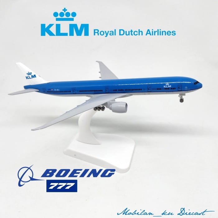 Diecast Pesawat Boeing 777 KLM Airlines 99% Metal Aircraft Model