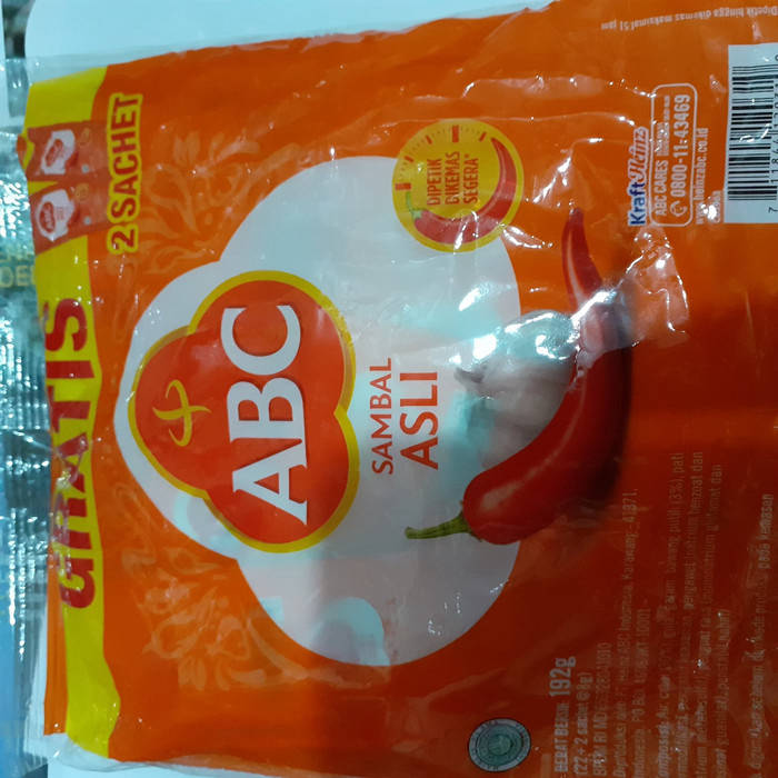 Sambal abc sachet. Per pack of contents of 22 sachets