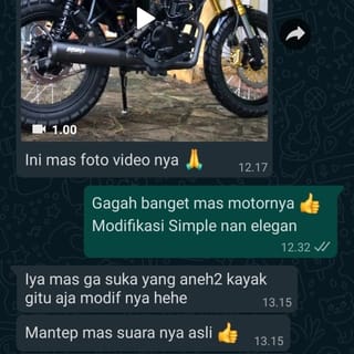 Welcome to our store, New arrival triumph model now available for kawasaki w175 manufactured with matrial fullstanlis japan With argon tig welding produces a stronger and neater product Glasswol uses the best fiber type that is anti-fuel and durable Installation is very easy without any hassle ( PNP) With the purchase of this product obtained fullsystem (neck + silincer) Note : be smart buyer gengs Many products are cheap but few prioritize quality Happy shopping!!