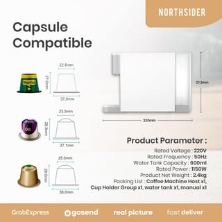 Bonus Coffee pods 20 pcs ( IF STOCK IS AVAILABLE ) Spec: - Model: S1301 - Rated Voltage : 220V/50Hz - Tank capacity : 600 ml - Power : 1150W - Net weight: 2.4 Kg - The size of the product can be seen in the 2nd gabr Feature: - Uses advanced 20BAR electromagnetic pump technology. - Fast heating technology, and stable extraction system. - Automatic power-off protection in case of water shortage - Automatically shut down in 10 minutes if the machine is not in use, save power and safety. - This coffee machine has two independent buttons, 40ML & 110ML mode. - Removable 600ML water tank, easy to remove. - Compatible CAPSULE sizes can be seen in the 2nd fig (can be used for nespresso, Starbucks, and other brands), pay attention to the capsule size in the 2nd figr - How to use the machine is in figure 3 ORDER PROCESS : MONDAY to SATURDAY. - Sameday : 09:00 – 14:00 - Instant : 09:00 – 16:00 - Next day / Others : 09:00 – 16:00 - SUNDAY IS OFF! Orders that come in on Saturday above 16:00 until SUNDAY will be processed MONDAY at 09:00. USE THE TRACK FEATURE to find out the last position of your package shipment. If the goods have been delivered by us, then the Responsibility and Power of Attorney have been at the Shipping COURIER Disclaimer: - Products that have been purchased cannot be returned or exchanged - Prices are subject to change without notice - Late delivery by the courier you choose is beyond our responsibility as a seller.