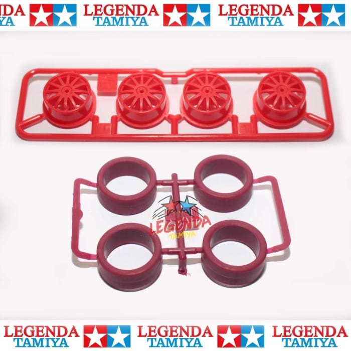 Tamiya - Tire Maroon / Tire Maroon &; Fin Wheel (RED) Medium Wheels - Ori