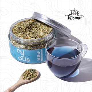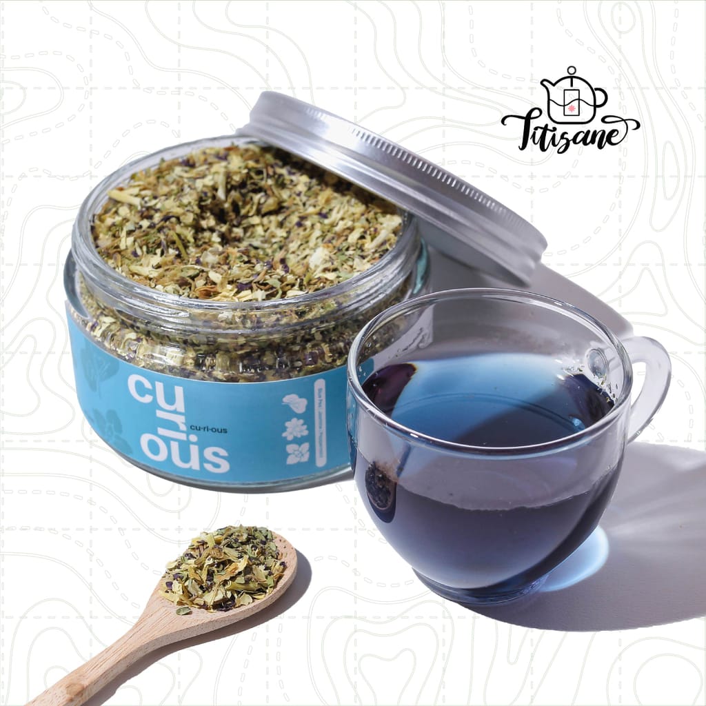 TITISANE ARTISAN TEA CURIOUS, HEALTHY BLUE-COLORED TEA Titisane Artisan Tea Curious, now available in 50 grams, packed in pretty jar of glass. Artisan Tea Curious, composed from a twilight-feels of Blue Pea, graceful Jasmine, and freshness of peppermint. Our Artisan Tea was made to soothe your mind, after a dreadful days. We make sure our artisan tea made that way, because every ingredients is carefully dried, within controlled environment to ensure those brings benefit to you. TITISANE CURIOUS BENEFITS TO OBTAIN: BLUE PEA - Antioxidants rich - prevent premature aging - boosting brains well-being JASMINE - calming nerve system - controlling blood sugar - regulating cholesterol level PEPPERMINT - curing digestive disorder,i nfluenza, and headache HOW TO BREW OUR TISANE - take 1 teaspoon of Titisane Curious into reusable teabag - put into you mug, then pour 300ml hot water - wait until 5 minutes, then Titisane Curious is ready. Titisane, originated from local farmers careful cultivation. A sip from nature with love and noble culture. Titisane. a Color to Stories.