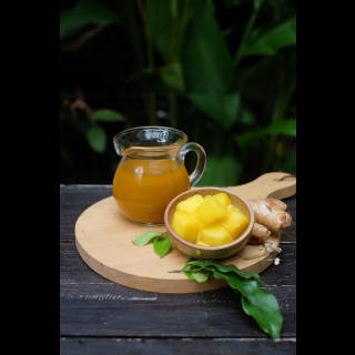 Fragrant Mango mixed with Ginger powder (150gr) How to use: 2 Tblsp mix with 200ml of hot or ice water (best served chilled) Benefits: Drink to cool the body down during hot weather. Ginger is excellent to help digestion. During flu/cold, serve with ho water to alleviate symptoms. Din Kes P-IRT No. 2133373080071-23