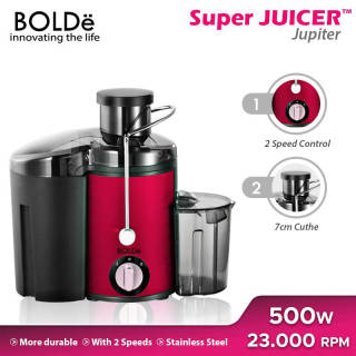 Complete all your kitchen appliance needs by getting BOLDe Super Juicer Jupiter – Red. Juicer is a very practical juice extracting tool and saves time when you need a healthy drink in a short time. Easy use Has a capacity of 500 ml It has a 1-year guarantee. Product Specifications Product Type: Juicer Type: Jupiter Color: Red Combination Size: 28 cm Power: 500 Watts Capacity 500 ml Benefits Make it easy when you want to make fruit juice Excess Practical use, just insert the fruit and press the handle then fresh juice is available in the kitchen Safe to wash with dishwasher Has a powerful motor with vibrational speed up to 23,000 RPM Filter containers and knives are made of stainless steel that is guaranteed quality and durability. There is a safety lock so that it remains safe to use It has two speed options, making it easy to set the smoothness level of the juice made Equipped with an anti-slip knife for better food extraction and destruction process This juice extracter has a cuthe funnel with a diameter of 65mm Having an elegant design that is easy to clean will make the kitchen and dining table look beautiful and neat. Package Contents 1 juicer unit
