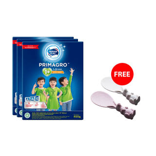3 pieces Frisian Flag Primagro 1+ Madu 400gr Free Rice Spoon Centong Nasi Rabbit specially formulated for children aged 1-3 years. It's healthier with lower sugar. Growth milk is a nutritional supplement that helps complement your child's daily nutrition to support his optimal growth and development. FREE Rice Spoon Centong Rice Rabbit Frisian Flag PRIMAGRO 1+ contains: AAE (9 Essential Amino Acids) complete: Histidine, Isoleucine, Leucine, Lysine, Methionine, Pheylalanine, Treonin, Tryptophan, Valine Fish Oil 0.47%, Omega 3 &6, and higher DHA High in Protein, Calcium, Magnesium and Vitamin D3 Iron and Zinc The only ones that recorded Sialic acid and Sphingomyelin* (supporting brain memory) Children need AAE (9 Essential Amino Acids) to help support their optimal growth and development. Frisian Flag Primagro has a patented AAE with a special formulation for children in growing age, of quality proteins in complete quantities and types. Frisian Flag PRIMAGRO 1+ AAEDukung Ibu prepare An Extra Strong Foundation, to help the Optimal Growth and Development of the Little One.*compared to products in his class Fill In Packages 3 boxes of Growth Milk FREE Rice Spoon Centong Rice Rabbit