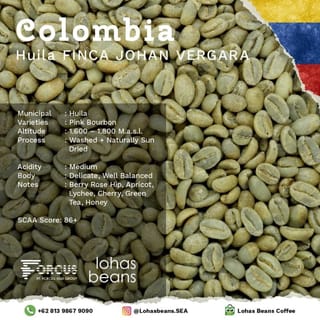 -:- Coffee Green Beans Arabica Colombia Specialty Grade -:- Orders that come in after 16.00 WIB / Holidays (Saturday & Sunday, red days), will be likely to be processed by us as soon as possible on the following Business Day -:- For purchase per sack / in bulk only, please contact us directly at +62.812.8535.9090 for other cargo options Varieties: Pink Bourbon Altitude: 1,600 – 1,800 M.a.s.l. Temperature: 16 – 24 °C Process: Washed, Naturally Sun Dried Fragrance/Aroma: Flowery, Tea-like, Red Fruits Aftertaste: Delicate Sweetness: High Acidity: Medium, Clean Body: Well Balanced Notes: Berry Rose Hip, Apricot, Lychee, Honey SCAA Score: 86+ Perfect for Filters Please visit & follow our iG page @lohasbeans.sea