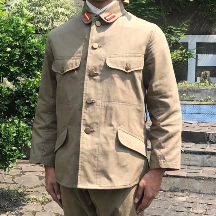 100% Cotton Starch Coated Historical Measurements! Please check in the description for size explanation IJA Type 98 Tunic Type 98 Tunic Used by IJA from 1938 until the end of the war in 1945 as a tunic (Outer) over a shirt (Jyuban). Other Japan Gear (IJA): Jyuban https://www.tokopedia.com/tbvintage/jyuban-kemeja-summer-tentara-jepang-ija-pd2-ww2 Type 98 Trousers https://www.tokopedia.com/tbvintage/type-98-trousers-celana-tentara-jepang-ww2 Specs: Cotton Twill 10 Oz Greenish Khaki Starch Coated Exact Copy from 1942 Dated ORIGINAL Sample ―Keyhole Buttonhole Insignia NOT Included Measurement System: The size used is the HISTORICAL size used by the Japanese military during the second world war. The larger the number listed, the smaller the size of the clothes, and the smaller the number listed, the larger the size of the clothes. 六 (Chest Circumference 88) Equivalent to 13 Slim Fit 五 (Chest Circumference 92) Equivalent to 13.5 Slim Fit 四 (Chest Circumference 96) Equivalent to 14 Slim Fit 三 (Chest Circumference 100) Equivalent to 14.5 Slim Fit 二 (Chest Circumference 104) Equivalent to 15 Slim Fit 一 (Chest Circumference 108) Equivalent to 15.5 Slim Fit Custom (not historical size) for modern bodies that don't fit at historical size (custom size details can be discussed via chat feature Real picture size 三