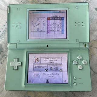 Nintendo DS Lite Green Tosca Condition: > Normal battery > Normal hinge > Normal volume > the bright screen is good, the screen over the edges when it turns on white but does not disturb > GBA slot cover is there > Normal touchscreen COMPLETENESS: -Unit - Mica hardcase - Flashcart R4 - 4GB memory