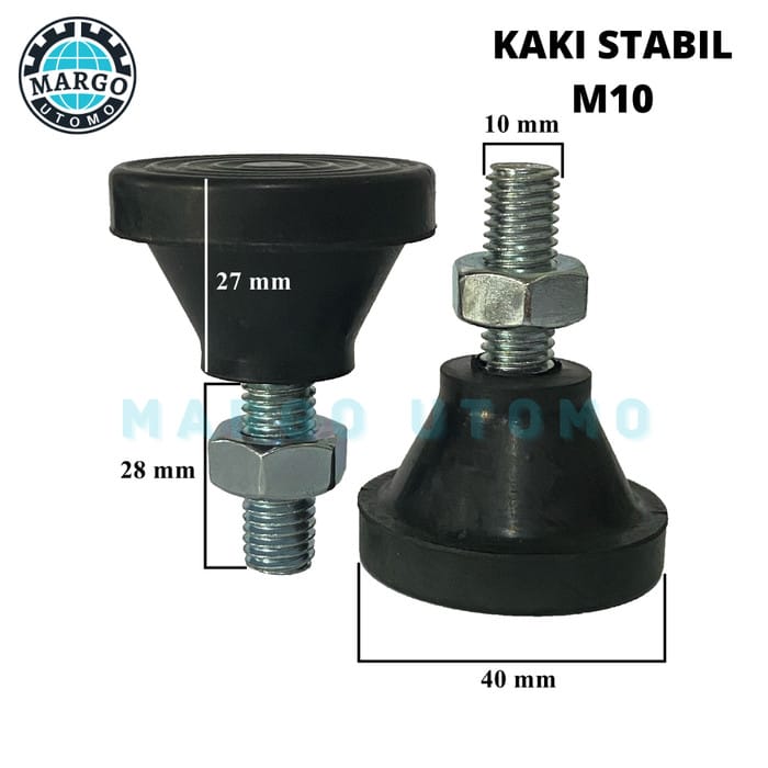 Rubber leg stabilizer of the chair / table that serves to protect the floor from scratching. It is equipped with an M10 nut (Wrench 17). Unit price Materials: - Natural rubber (not mixed / recycled) -Strong - Not easily brittle / cracked -Thick Size: - Drat diameter = 10 mm / 1 cm (M10) - Pitch / Drat distance = 1.5 - Drat length = 28 mm / 2.8 cm - Diameter= 40 mm / 4 cm - Height = 27 mm / 2.7 cm *If you are still not sure, it can be discussed with the seller.