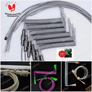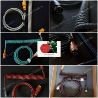 Bushido Cable Custom coiled cable keyboard Double Sleeved. Specifications are the same as other types of Bushido Cables: - Metal housing USB C/mini USB/micro usb and A (Plug unplugged hundreds of times guaranteed safe) - ESD safe and Oxidation prevention* - Reversed coiled processed resulting tighter coil and extra steps to ensure even tighter and orderly coils and increase coil durability 1-3 years (dependent to pressures in usage) - Heating and cooling process is evenly distributed. - Always comply with International Standard wiring diagrams, so it is safe to use on any gadget. - Painted with primer and clear coat to resist nail scratches. - S.O.P: tested and photographed before shipping. You get what you see, no beautification, no lies. - 6 Months Warranty Service. Handcrafted and handmade products local Bogor. Struggling against the mafia cartel importing Chinese finished products, which are rebranding such as Pressplay, Galatix, My Neighbour Keyboard, fantech, WASD. They received incentives from the Chinese government to infiltrate with the intention of killing local MSME products. Please chat for color options, including: - Usb c/mini usb or micro usb. - Sleeve color more than 150 colors - Aviator color. Complete with: Primer, color and clear coating gloss or doff. - Heatshrink color - Coil inner diameter 10mm/13mm - Coil direction wants to be right or left - Aviator direction to the side or up - Default cable length is 1.8m-1.2m (coil part and straight part). You can request a custom with a fixed max length of 3 meters.