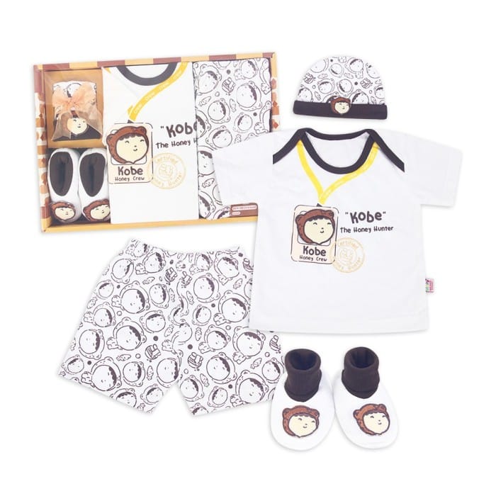 Newborn Baby Gift Set Motif: Kobe Color: Dark Brown Material: 100% Cotton SNI FREE GIFT WRAP & BUBBLE WRAP while supplies last Paket Perlengkapan Bayi Baru Lahir / Newborn Package / Baby Gift Set A set of baby clothes packaged in very attractive packaging. It is suitable as an offering of happiness for your family and relatives who have just been blessed with a baby. The product consists of: 1 Piece Short sleeve shirt 1 Piece Shorts 1 Hat 1 pair of Shoes Other color options: Light Brown: https://www.tokopedia.com/golden-bell/perlengkapan-bayi-baru-lahir-baby-gift-set-cake-shop-coklat-muda