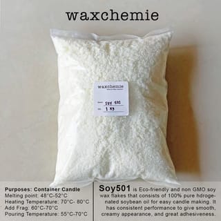 Minimum purchase of 1kg, price per kg and there is a possibility of being made into one if you buy more than 1kg. READY STOCK! Soy Wax Flakes is a wax product made from the main raw material in the form of soybean seeds. Quality: - Eco-friendly - No Toxic Substances - Clean Combustion with little smoke and residue, this makes it a good choice for maintaining indoor air quality. Specification : - Flakes shape that is easy to mold and melt. - It has a relatively low melting point, making it suitable for use in the manufacture of candles that have a longer burning time. - Neutral Color Uses : - Candle Making - Aromatherapy - Etc. I am 501 Formulated to ease candle makers for making smooth and creamy container candle I am 506 Purposedly for advanced candle maker, where the quality of the wax is cleaner (white, odorless), and not as oily for slower burning. 1,100% of the soy wax, no paraffin ingredients, meet Europe and the United States laws and regulations. 2. Burning time Longer than paraffin 30-50%. 3.Avirulent environmental protection. Burns not carcinogenic substances 4. Melting temperature is low, saving the heat source, production safety for operators Melting:Point: 48-52 Oil Content%:0.5 *We have partnership with credential factories. All of the wax are distributed through quality control and have been tested with our internal team. We accept no-label-candle making, any wax or other inquires with minimum orders. Hopefully we can assist you :)