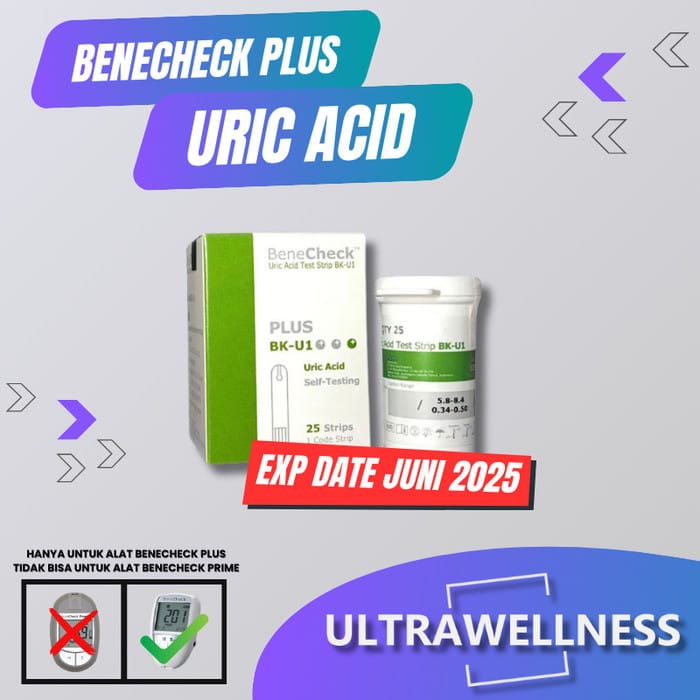 BENECHECK PLUS URIC ACID TEST STRIP (CONTENTS 25PCS) Can only be used on BeneCheck PLUS TOOL. Superiority: – Duration : 15 seconds – Range: 3-20 mg/dL – Contents of uric acid strips: 25pcs Medical device registration number :2010197773