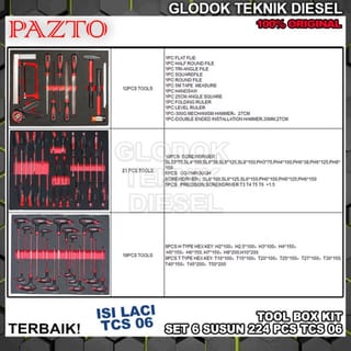 WIPRO Tool Cabinet / Tool Kit Set 6 Stack 127Pcs TKS-06 Wipro TKS 06 Specifications: SHELVES 1, 2, 3 HAVE CONTENTS ACCORDING TO THE PHOTO SHELVES 4, 5 ,6 NO CONTENTS Equipment : 13pcs 1/4"dr.socket 4, 4.5, 5, 5.5, 6, 7, 8, 9, 10, 11, 12, 13, 14mm 1pcs 1/4" Dr. Universal Joint; 1pcs 1/4"Dr. sliding bar; 1pcs 1/4"Dr. Extension Bar 1pcs 1/4" ratchet handle 72t; 1pcs spinner handle 17pcs 1/2"Dr. socket 10, 11, 12, 13, 14, 15, 16, 17, 18, 19, 21, 22, 23, 24, 27, 30, 32mm 1pcs 1/2"Dr.universal joint; 1pcs 1/2"Dr. sliding bar; 2pcs 1/2" Dr. Extension Bar 1pcs 1/2" ratchet handle 72T 9pcs 1/4''dr. deep socket 5, 6, 7, 8, 9, 10, 11, 12, 13mm 10pcs ball hex key wrenches 1.5, 2, 2.5, 3, 4, 5, 5.5, 6, 8, 10mm 23pcs 1/4''dr. insert socket bits T8,10,15,20,25,27,30,40; PH1,2,3; PZ1,2,3; SL4,5.5,7 ; H3,4,5,6,7,8mm 6pcs T type hex key: 2x100mm; 2.5x100mm; 3x100mm; 4x150mm; 5x150mm; 6x150mm 8pcs double ring tensioner: 6x7, 8x9, 10x11, 12x13, 14x15, 16x17, 18x19, 20x22mm 17 pcs combination spanner: 6, 7, 8, 9, 10, 11, 12, 13, 14, 15, 16, 17, 18, 19, 20, 21, 22mm 1pc 8" combination fold; 1pc 7.5" cutting bender; 1pc 8"long nose fold screwdriver: SL6.0x38mm SL4x100mm; SL5.0x100mm SL6.0x150mm; PH2x38mm; PH1x100mm; PH2x100mm; Ph3x150mm 1pcs 500g mechanist hammer; 1pcs 40mm Hammer Case. Pazto TCS-06 Specifications TCS 06 (224 pcs) 6 drawers tool cart with tools 17PCS-1/2"DR. SOCKET: 8-9-10-11-12-13-15-16-17-19-20-21-22-24-27-30-32 1PCS-1/2"DR. UNIVERSAL JOINT 1PCS-1/2"DR. SLIDING BAR, 1PCS-1/2"DR. X5" EXTENSION BAR 1PCS-1/2"DR. X 10" EXTENSION BAR 1PCS-1/2" RATCHET HANDLE 13PCS-1/4"DR. SOCKET: 4,4.5,5,5.5,6,7,8,9,10,11,12,13,14, 1PCS-1/4"DR. UNIVERSAL JOINT, 1PCS-1/4"DR. SLIDING BAR 1PCS-1/4"DR X2". BAR EXTENSION, 1PCS-1/4"DR X 4". EXTENSION BAR 1PCS-1/4" RATCHET HANDLE, 1PCS-SPINNER HANDLE 17PCS-3/8"DR. SOCKET:6-7-8-9-10-11-12-13-14-15-16-17-18-19-20-21-22mm, 1PCS-3/8"DR. UNIVERSAL JOINT, 1PCS-3/8"DR. SLIDING T BAR, 1PCS-3/8"DR X3" EXTENSION BAR, 1PCS-3/8"DR X 6" EXTENSION BAR, 2PCS-3/8"DR. SPARK PLUG SOCKET 16 21MM, 7PCS-3/8" DR. TX SOCKETS:E10, E11, E12, E14, E16,E18,E20, 1PCS-3/8" RATCHET HANDLE: SCREWDRIVER SET (-):6*38 8*175 3*75 6*150 4*75 5*100 4*100 SCREWDRIVER SET (+): 6*38, 8*200, 3*75, 8*150, 6*100, 5*100, 6*125 6 Pcs Insulated screwdriver: 6*125(-), 5*100(-), 4*100(-), 3*75(-), 4*100(+), 6*100(+) 7 Pcs Clock screwdriver: T3, T4,T5, T6,+1.5, -1.5 and Plum blossom type: 0.8 8 Pcs Folding inner hexagon: T9,T10, T15, T20, T25, T27, T30,T40 9 Pcs Deep Sockets: 5-6-7-8-9-10-11-12-13mm 23PCS BIT SOCKET SET: PZ1,PZ2,PZ3,SL4,SL5.5,SL7,H3, H4,H5,H6,H7, H8, PH1,PH2,PH3,T8,T10, T15, T20, T25,T27, T30,T40 9 pcs L-shape hex key: 1.5MM 2MM 2.5MM, 3MM, 4MM, 5MM, 6MM, 8MM, 10MM 17 PCS COMBINATION SPANNER SET: 6-7-8-9-10-11-12-13-14-15-16-17-18-19-20-21-22mm Double Torx Wrench 45°: 5.5*78*10; 9*11:10*12:12*13; 14*17; 17*19; 19*22mm 1PC flat flie 1PC half round file 1PC tri-angle file 1PC squarefile 1PC round file 1pc 5m tape measure 1pc hands aw 1pc 25cm square angle 1pc folding ruler 1pc Level ruler 1PC-300g mechanism hammer, 27cm 1PC-Double ended installation hammer,30mm,27cm 10PC Screwdriver: SL33*75, SL4*100, SL6*38, SL6*125, SL8*150, PH3*75, PH4*100, PH6*38, PH6*125, PH8*150 6PC Go-through Screwdriver: SL6*100, SL6*125, SL6*150, PH6*100, PH6*125, PH6*150 5PC Precision Screwdriver:T3 T4 T5 T6 +1.5 9PC H Type Hex Key. H2*100, H2.5*100, H3*100, H4*150, H5*150, H6*150, H7*150, H8*200,H10*200 9PC T Type Hex Key. T10*100, T15*100, T20*100, T25*150, T27*100, T30*150, T40*150, T45*200, T50*200 Pazto toolbox TCS 06 all drawers have contents (details of completeness and photos of the contents of the Pazto TCS-06 type drawer are in the photo) To choose the variant : 1. PAZTO TCS 06 (224 pcs) 2. WIPRO TKS-06 (127 pcs) No need to worry about shipping, Secure Package is Experienced! For delivery outside the online platform can be helped, please chat with my boss don't hesitate