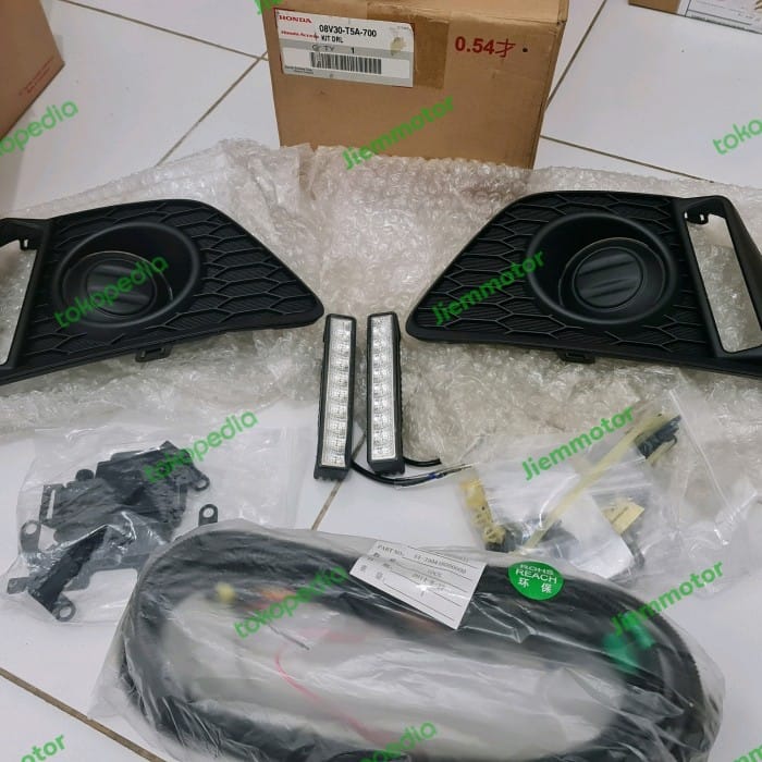 DRL kit for honda jazz GK 5 type A and S 2014 up part code 08V30-T5A-700A Complete 1set just install wiring cable there is a fuse so it is safer, completeness = * 2pc DRL left and right Philips brand *DRL Module *cable ties *Iron Brake DLR *Cover house foglamp left right *Cable socket socket