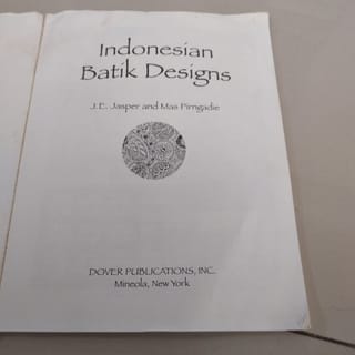 • Title & Author: This book is titled "Indonesian Batik Design" by J.E. Jasper and Mas Pirngadie. Published by Dover Publications, Inc. in 2006. 📚 • Contents & Pages: The book has 59 pages. The content may be related to batik design Indonesia. Suitable for readers who are interested in batik art. • Book Condition: Used books with general condition. There is a water container in the first yard and back. However, the pages are still safe. No other damage visible. • Authenticity: This book is ORIGINAL. You will get the original version of "English Batik Design". Be sure to check the conditions before buying. 🛍️