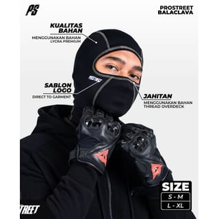 BALACLAVA material is made of the best cotton material, (guaranteed to be 100% cool and comfortable to wear every day) PRODUCT FEATURES 1. LYCRA PREMIUM main raw material 2. Logo screen printing 3. Color: Black HOW TO COMPLAIN ABOUT DEFECTIVE PRODUCTS OR LACK OF BONUSES: 1. Complaints through the features provided by MARKET PLACE 2. Attach the unboxing video without pausing when the package has been received 3. Attach a photo of the receipt listed on the package 4. Complaint limit 3 days after the goods are received NOTE : - Every item that has been sent, the responsibility has shifted to the courier - However, PROSTREET will continue to help until the goods reach their destination