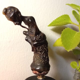 WEIRD.. MOST VALUEABLE... COLLECTOR ITEM!! Keris Hilt / Danganan BALI-LOMBOK Very rare... Unique amp; Old Motif Figure Elderly (Brahmin) Very detailed ... The complex and physical krawangan danganan is very well maintained and sdh including SELUT Keris. Height dimensions 11-12cm. Greetings from Arts and Culture