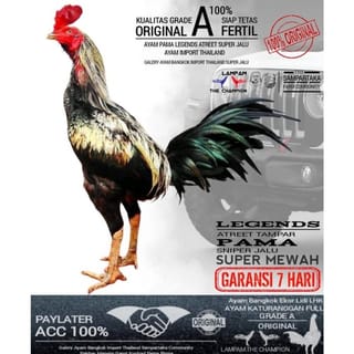 description Super Aduan Pama Chicken Eggs Super Pama super luxury IMPORTANT: Do not accept returns and returns in any form because buying means agreeing to the rules SPECS OF AYAM PAMA : Ayam pama is the result of the development of the latest fighting chicken with a posture that is considered very suitable The pama chicken is the result of a cross between Burmese and Bangkok fighting chickens. The origin of the pama chicken is Thailand Chicken pama originated in Thailand. The country that produces the world's best fighting chicken is the area where the pama chicken was developed. Ayam pama itself has the same advantages as its predecessor but with the development of an even better style and posture. With the best breeding innovations, pama chickens are the most popular fighting chickens today. ADVANTAGES OF PAMA CHICKEN: The pama chicken that is able to overthrow its predecessor, the Burmese chicken, has unique head characteristics. The head of the pama chicken is small pointed. In addition, the size of the pama chicken beard is average standing and large. - Accurate punch to the neck and head reaches 90% - Dominant hit from the front/ nyawat/ mranggal/ atreet slap backward slap - More accurate path - Agile and fast - Smart and unique in competition EGG CONDITION: - Eggs have been checked 10 times before being sent to the buyer - the eggs are in excellent condition and ready to hatch - only deliver eggs of good quality ( no damaged and defective goods sent ) - 7 days warranty (according to the description of the picture) Thank you for visiting, happy shopping