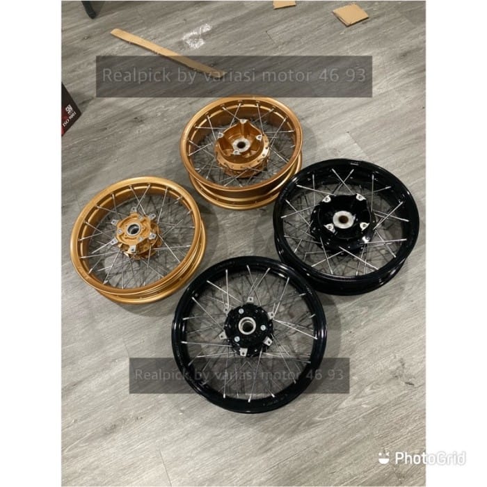 ready : Products guaranteed 100% Original VND FINGER WHEELS VND RING 14 - ADV 150 Model: A750 Size: Front 250x14, Rear 350x14 Completeness: full set of front and rear wheels consisting of wheels, drum & spokes Material: Aluminum Alloy Color: Black Glossy, Gold Matte Other advantages are: -Ber-SNI No. 4658:2008, ISO 9001 -Material made of aluminum alloy -Quality, strong and durable -Chrome color is sleek and durable Realpick by Bike Variations 46 93