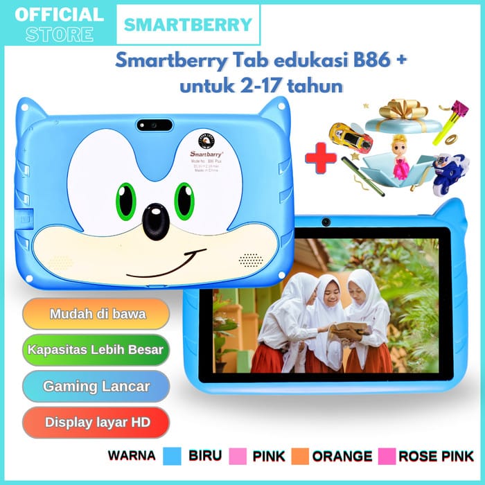 For extra security, you can include a double bubble warp in the product bundle All Items READY STOCK 100% satisfaction guaranteed -If you are not satisfied with an item in our store for any reason, please ask us, we will provide a solution immediately Follow our store to get more surprises! --------------------------------------------------------------------------------------------------------------------------------------- Kids Tablet / Kids Tablet / 7 Inch Tablet / PC Tablet / Android Tablet / 4/128GB / Kids Gift / Zoom / WhatsApp / Play Store / 2 Camera / WiFi only The SmartBerry TAB B86 Plus not only provides an entertaining learning experience for children but is also a versatile device that can be used by the whole family. Designed specifically for children, these tablets are equipped with strict security controls and a safe learning environment. Parents can easily manage screen access. Equipped with a sturdy and child-friendly case, this tablet provides extra protection against shocks and impacts that may occur during daily use. The case also provides a comfortable grip for children's small hands, making the experience of using the tablet more ergonomic and safe. Available in 4 colors : ROSE PINK BLUE ORANGE PINK Description : Frequency : 1.5 GHz System OS : Android 13 Screen : 7 inch High Definition Camera : 2.0 MP + 2.0 MP Wifi only : 2.4G+5G Bluetooth : 4.0 CPU : Mali T720 Memory : 4/128GB Battery : 3200 MaH Functional support: bluetooth, wifi, GPS, etc Language : Multinational Language For safe delivery, because we are equipped with bubblewrap so that the goods that arrive are safe to reach their destination. Happy shopping :) If the package you ordered is not suitable or damaged, you can contact our admin, we will replace a new one We have a warranty for 7 days after the package arrives Requirements: PLEASE VIDEO THE PROCESS OF OPENING THE PACKAGE COMPLETELY AND WITHOUT PAUSE