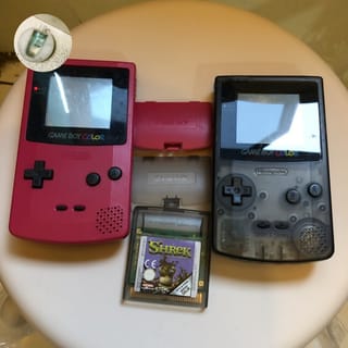 Take all 2pcs gbc - Pink on No sound just change elco Polarizer just plug in Built-in original housing - Black off New Housint ( repro ) Free original gbc cartridge Switch on/of broken ( consider material / part )
