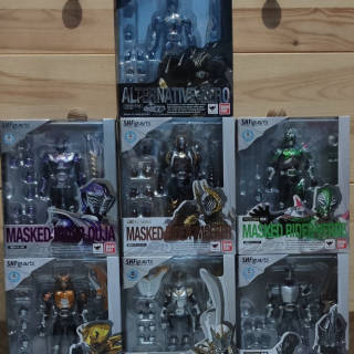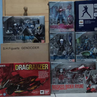 SHF Kamen Rider Ryuki set: 1. Ryuki Survive 2. Knight Survive 3. Dark rider 4. Odin 5. Rider Shooter 6. Zolda 7. Maggigie 8. Ryuga & Dragblacker 9. Alternative Zero 10. Ouja 11. Prevail 12. Green 13. Scissor 14. Woman 15. Gay 16. Raymond 17. Ryuki Blank Form 18. Abyss (from decade series) 19. Tiger 20. Knight & Darkwing 21. Ryuki & Dragreder 22. Dragranzer 23. Genocider Number 16-23 BIB condition, smooth goods, the rest MISB condition, box condition 90%-95% storage effect