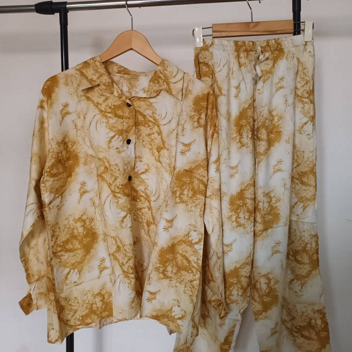 Size LD 102cm, 72cm long, waist circumference 112cm pants there are side pockets, 95cm trouser length, premium cotton material, guaranteed not hot and not nerawang must be comfortable and does not disappoint the number of products in one package consists of tops and pants, belts (one set)