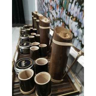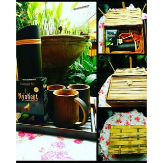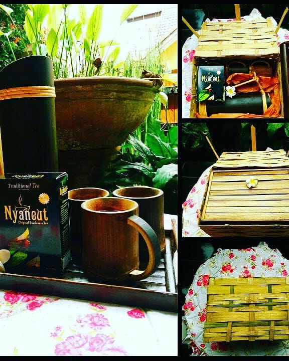 The complete nyaneut premium original green tea package, consisting of three bamboo cups and one bamboo teapot also of course one can of original nyaneut green tea equipped with a creative bamboo tray so that it becomes a beautiful package of nyaneut tea....
