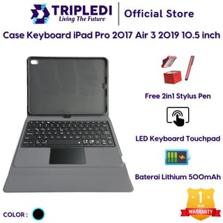 Overview The premium Leather Folio Case Slim for iPad Pro keyboard comes with a 7-color backlight that can be adjusted to your liking, with an ultra-thin and lightweight mode to carry, automatically entering sleep mode when closed. Has a sensitive touchpad on the cover instead of a mouse and touchscreen Advantages * Tripledi Authorized Dealer Certified * BONUS Bubble Wrap so that the goods are guaranteed to arrive safely. * 100% money back guarantee if the product does not match the description and drawing. * Tripledi Official Warranty for 6 Months (*5 star good review) * Exclusive service to report directly to the courier if you encounter delivery problems. Features * Made of high-quality leather fabric with soft inner lining * The keyboard layout is comfortable and can type quickly like a laptop with a familiar layout and well-placed keys. * Equipped with built-in rechargeable battery, long battery life. * The keyboard is equipped with a slot to hold the Apple pencil stylus that allows you to easily reach the pen whenever you want to use the touch pen function. * Not to forget the touchpad feature that is very comfortable to use and gives a sensation like using a laptop on your ipad Suitable Model: * iPad 10.2" gen 7 2019 A2197, A2200, A2198 * iPad 10.2" gen 8 2020 A2270, A2428, A2429, A2430 * iPad 10.2" gen 9 2021 A2602, A2604, A2603, A2605 * iPad Pro 10.5" 2017 A1709, A1852, A1701 * iPad Air 10.5: 3rd Gen 2019 A2153, A2123, A2154, A2152 Specifications: Material: PU+TPU+ABS Bluetooth: v5.0 Operating distance: 10 meters Modulation system: GFSK Working voltage: 3.3~4.2V Working current: 30~100mA Charging current: 250 mA Standby time: 180 days Continuous working hours: <2.5 hours (with backlight) 400 hours (turn off backlight) Charging time: <3 hours Lithium battery capacity: 500 mAh Package includes: 1x Case Keyboard 1x Charging Cable 1x Free Stylus Pen