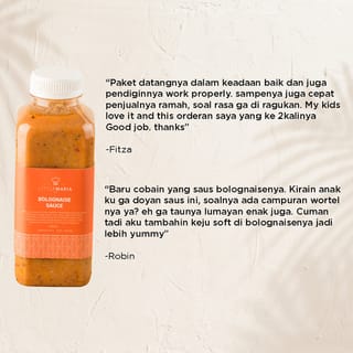 PLEASE READ****** 1. LittleMaria sauce has an expiration date (durability) of 6 - 8 months in the freezer or as stated on the package. And it also lasts about 3-5 days in the refrigerator or chiller/showcase. 2. Purchases using Same Day will be served until a maximum of 3 pm. 3. Purchases using Instant will be served up to a maximum of 5 pm 4. Delivery Monday-SATURDAY. How to Cook: Simply heat in the microwave for 2-3 minutes or pot for 2-3 minutes. After that, it's ready to serve. Made with love. Using 100% fresh ingredients, without preservatives, we guarantee that the resulting taste will be more delicious. With our high commitment to producing quality sauces and competitive prices, we dare to guarantee that you will be addicted to the taste, if you have any questions, feel free to chat with our admin