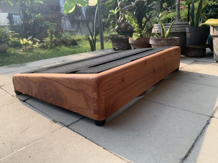 Pedalboard size 30x60 color natural finish raw or satin Full velcro Low Deck series cannot be opened Includes 1.8 power cable and 2 IEC socket electrical plugs with fuse inside