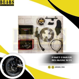 Hello brother modification This time we make a rear brake solution package into discs on Kawasaki W175 which is made to be easy to install on your motorcycle. What you get in this package is - Rear Drum Adapter - Original rear disc disc - Disc disc bolts - Nissin samurai Original calipers - Custom Caliper Bracket - RCB Original brake master - Rear Brake Hose - Custom brake master bracket - Custom brake fluid bracket - Brake fluid hose - Brake fluid cylinder Already made pnp with W175 All the buyer has to do is install a drum adapter on his W175 drum ( Requires drilling on built-in drum ) If you would like to join us, you can come to our workshop. We also have offline workshops Custom Parts Specialist and modification of all motors Our location in Tangerang palm hut Close to Bintaro is on the Terrace Workshop (BEARS) map We don't accept complaints Without Video Unboxing No breaks MUST Have a full video when the package is received and tested