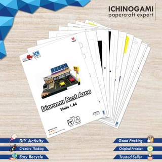Special Papercraft Set : Diorama Rest Area Papercraft This is a Papercraft Kit that can be assembled easily. This kit contains a special diorama papercraft set, complete with basic assembly instructions. Made from 100% environmentally friendly paper. To assemble it, there are basic papercraft making instructions and practice sheets for cutting and cutting. You just need to prepare paper glue, as this pattern is already cut off. For beginner fabricators, it is recommended to be accompanied by an adult or someone who has assembled papercraft before. In general, papercraft with a difficulty level of 1 out of 5 takes 30 minutes to assemble. The techniques used to assemble papercraft are paper cutting, folding, and gluing, so papercraft is very good for training spatial skills, 3D recognition, fine motor development, practicing logical thinking, and also creativity for all ages. About Papercraft In today's technological world, Ichinogami brings Papercraft and the fun of crafting your own toys. We believe Papercraft has good benefits for everyone, from children to adults. For most people, papercraft is a unique experience that is new, can enrich expertise, and can also create interaction with others, both in person and online through their community. We also want to provide quality products by ensuring that all printed paper has environmentally friendly certification and ink that is fast-fading, even for more than 5 years on display. Note: If it is assembled and wants to be displayed, place it in a special place such as a glass cabinet and avoid direct sunlight. #paper #craft #papercraft #crewmate #edutainment #kreasikertas #kertas
