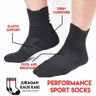Performance socks are specially designed to support your sports activities by providing more performance and protection. Information: - All size size 36-43. - Unisex (for men and women). - Material composition: 70% Cotton, 20% Nylon, 10% Spandex. - Not sag easily, very fit on the legs, and absorbs sweat. - Cut over the ankle, suitable for use with sports shoes.