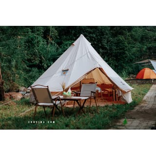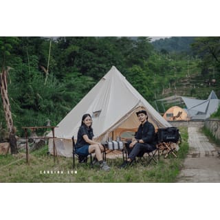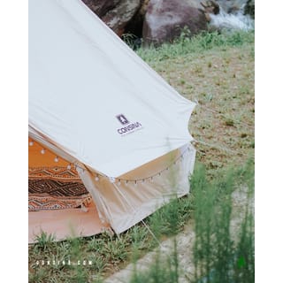 Consina Yurt Bell Tent 4mx4m Canvass Cotton , Glamping Family The tent with a cool cone design from Consina makes camping group or family events more memorable. The main material is made of cotton canvas which is 100% waterproof making the tent stay cool even though the heat is scorching and has good ventilation, and is resistant to strong winds / storms. With a height of 2 meters in the shape of a cone, enough for a capacity of 4 people with accessories such as: Velbed, folding camping chairs and folding tables. It is very easy to erect with a sturdy aluminum frame in the center of the tent. Equipped with ventilation in each part that keeps air circulation in the tent maintained. Weight 24KG Size 400 x 400 x 200cm Application: Camper Van, Outbound, Glamping Camp, Family camping