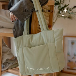 THE PAPER BUNNY Singapore Puffer Shopper New and improved, better than ever - technical upgrades have been made to the Puffer Shopper to improve the Puffer Shopper experience, in particular to prevent pilling. Your new and improved Puffer Shopper is water-resistant, soft as a cloud, lightweight, durable, spacious and comfortable on your shoulder - a reliable, versatile staple to take everywhere with you. Fits most 16" laptops (including a 16" Macbook Pro) comfortably. Product Features New and improved to prevent pilling Soft and comfortable padded exterior Zip closure 2 internal pockets Hidden external zip pocket on both sides for easy access to important items (keys, travel card etc.) Material: Nylon Dimensions Approximately: Base Length 32 cm, Height 30 cm Strap Drop: 27 cm Care Instructions Spot clean only