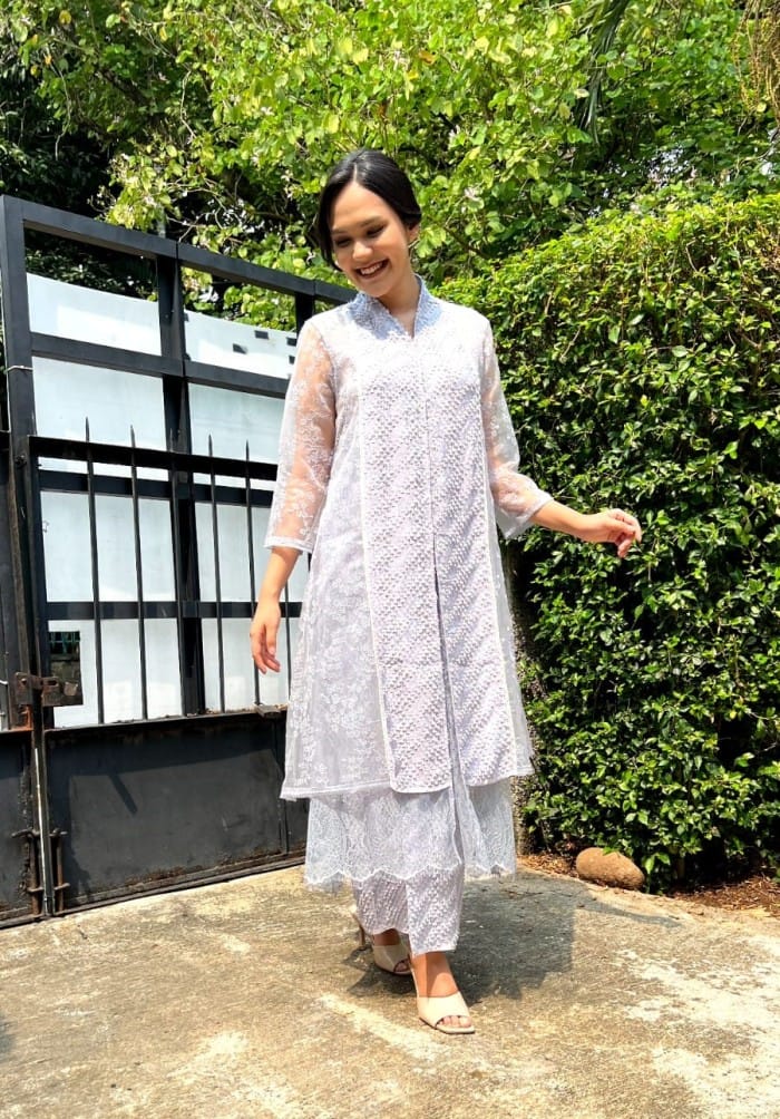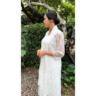 Arsa Kebaya Inner are included Size : Free Size Material Outer : Lace & Weaving | Inner : Satin Care Instructions Dry clean only. Measurement Outer Bust: 104 cm | Armhole: 46 cm | Sleeves length: 42 cm | Length : 127 cm Inner Bust : 80-110 cm | Length: 95 cm | Straps:30 cm Note: Note: Please read the terms and conditions before placing an order. All SALE and promotional-priced items are non-returnable, non-refundable and non-exchangeable. For SALE ITEMS INNER are NOT INCLUDED Product colour may slightly vary due to lighting sources or screen settings. Please be aware that our product may differ 1-2 cm (both sides) from our size chart, due to its craftsmanship.