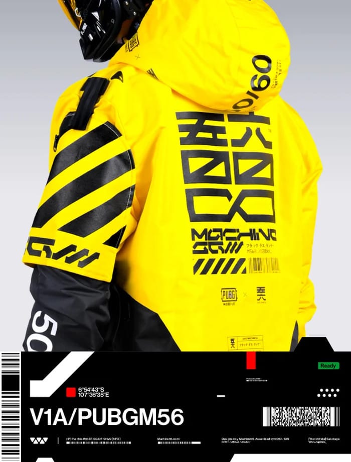 V1A/PUBGM56 Officially licensed PUBGM X M56 collaboration set as seen as in PUBGM in game skins set, 1:1 scale format FL_V1A-2B [PUBGM56] Variant. Removable SD-A1 arms Removable front M56/WEB01 black sling. Non removable hood. sharp cut Black on black DTF and screen prints. 7 Compartments SD-A1 arms compatible included Model are 165cm height, wearing [S] size.