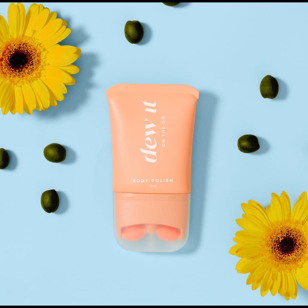 Okay, hold on. Roll it while walking? Uh huh, that’s right! Meet Dew It’s Body Polish, equipped with the Dew It Roller to massage your tired skin. Complete with UV Protection, this lightweight and cooling polish is here to race you to your next location looking 100%! A lightweight, UV protective formulation for a hassle-free glow. Step One: Bring Your Dew It Body Polish in your bag/ carry-on Step Two: Squeeze it on to your arms and legs Step Three: Roll and massage into your skin while walking, running, or even squatting... you decide Step Four: Glow all day!