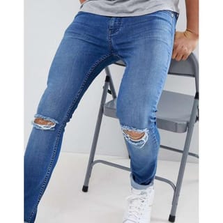 men's slim fit long jeans Tear Knee Jeans Ripped Shoft Jean - Black, 25