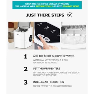 Hicon Portable Ice Maker - Make Ice in Minutes Description: -Brand: Hicon -Within 24 hours can create about 15 kilograms of ice. -With a full ice sensor -2L water tank -Can make 9 ice cubes in 6-9 minutes -Ice bucket capacity 0.6 Gillo Rum -There is a system to prevent water from running out. -There is a full ice alert. -Using steel, copper and aluminum materials -More heat dissipation area, better heat removal. -Ice making speed is faster -Work with quiet sounds -Compressor operating Low noise, only 40db, no noise -Long shaped glass Seeing the ice making process makes you clearly visible. -ABS material, creating work delicate, strong and modern -Heat vent Protect the device and accelerate the heat dissipation Maintain service life -Side vent Add beauty and good heat dissipation -While the water pump -Electric Current: 0.043 (A) -Voltage: 0.043 (W) -While the compiler is working -Electric current: 3.172 (A) -Voltage: 392.3 (W) -Normal ice -Electric current: 0.733 (A) -Voltage: 91.16 (W) -Water solubility -Electric current: 0.798 (A) -Voltage: 114.2 (W) -Product Name: HZB-16A -Voltage / Frequency: 220-240V / 50Hz -Ice cube size: 26 * 32mm -Create ice at once: 9 cubes -24 hours can produce: 15 kg -Water filling: Manual filling -Ice shape: Round like a bullet -Power: 105W -Production time: 6-13 minutes -Ice capacity: 0.6 kg / 60 tablets -Watering capacity 7KG -Body size: 222*313*320mm.