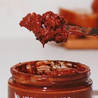 The name has been changed to VEGAN FORE It tastes like ferrero rocher but doesn't use the ingredients of the chael made from almonds and dark chocolate hazelnuts (with hazelnut chunks). No added sugar. No preservatives. No thickener - Dairy free -Vegan - Keto friendly - No added oil - No added sugar (60% dark chocolate has a slight sweetness) - No added butter / margarine Shelf life 4 months at room temperature / 8 months in the refrigerator Net content : 180 grams Calories: 28.2 calories per teaspoon (tsp) IG: @nudespread #selai #selaikacang #diet #menudiet #sarapansehat #almondbutter #almond #jam #keto
